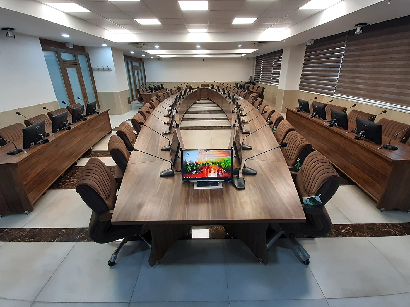 پیادهسازی سیستم کنفرانس دیجیتال با ظرفیت بالا، مانیتورهای رومیزی و سیستم تصویربرداری هوشمند 4K. این پروژه جهت ایجاد یک سالن مدیریتی مدرن با پوشش کامل صوتی و تصویری و قابلیتهای اتوماتیک طراحی شد.